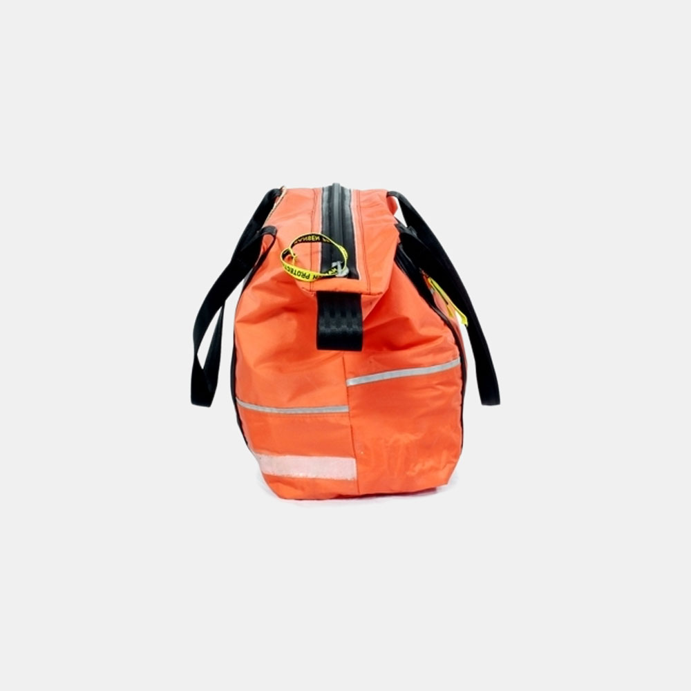 På grunn av det vannavstøtende materialet i den resirkulerte redningsdrakten, kan det trygt begynne å regne! Samtidig som regnet holdes borte, har bagen også reflekser slik at du blir sett. Utstyrt med vanntett glidelås.