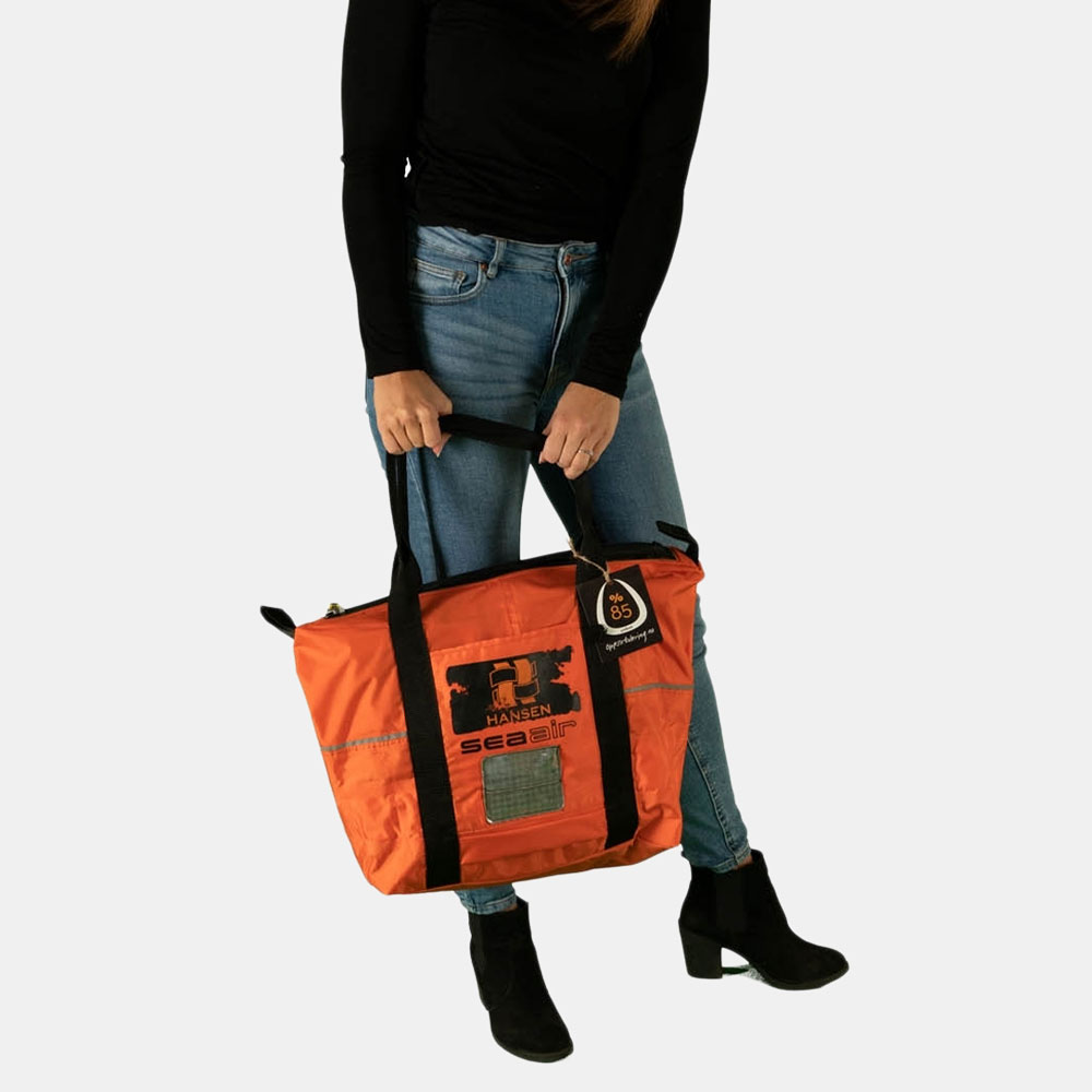 SeaAir Oppsirkulert Bag 25 L er en stilfull og praktisk liten bag, hovedsaklig laget av gjenbrukt materiale fra brukte redningsdrakter. Bagen passer ypperlig på tur i båten, på stranda eller til trening.
