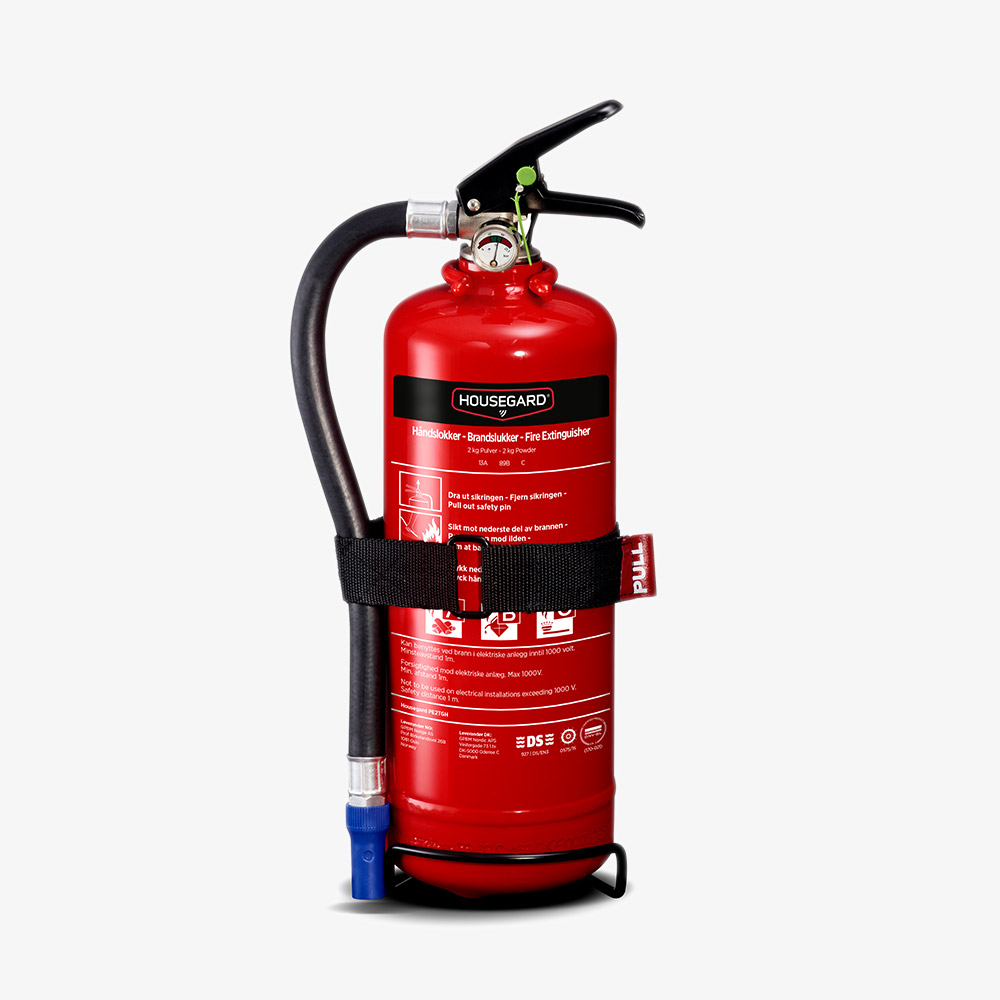 Housegard 6 kg pulverslukker med slukkeeffekt 55A anbefales for alle boliger og større båter. Brannklasse ABC. Høyeste slukkeeffekten på markedet. Veggfeste er inkludert.