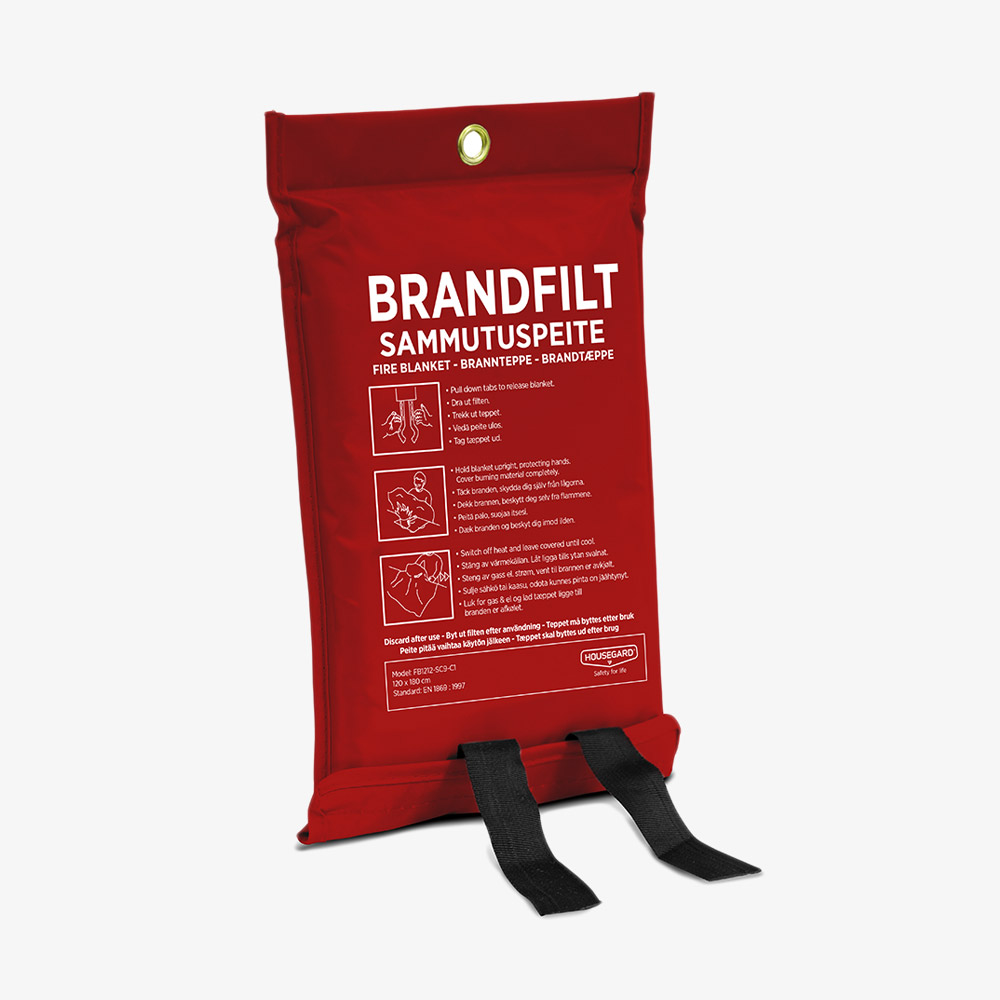 Housegard brannteppe 120 x 180 cm, silikonbelegg. Bør være både i båten og hjemme.